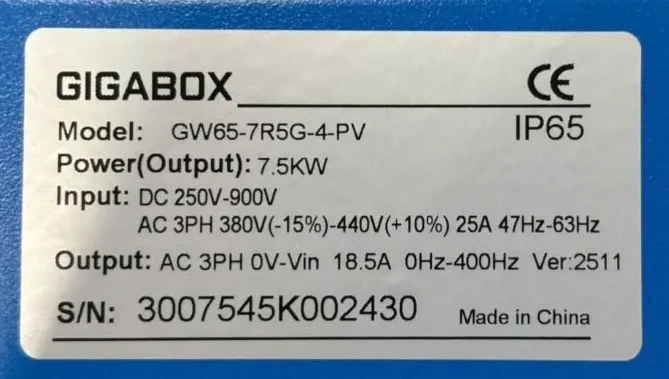 Cùng Gigawatt tìm hiểu Thông số kỹ thuật của biến tần/ inverter bơm 7.5kW Phaeton