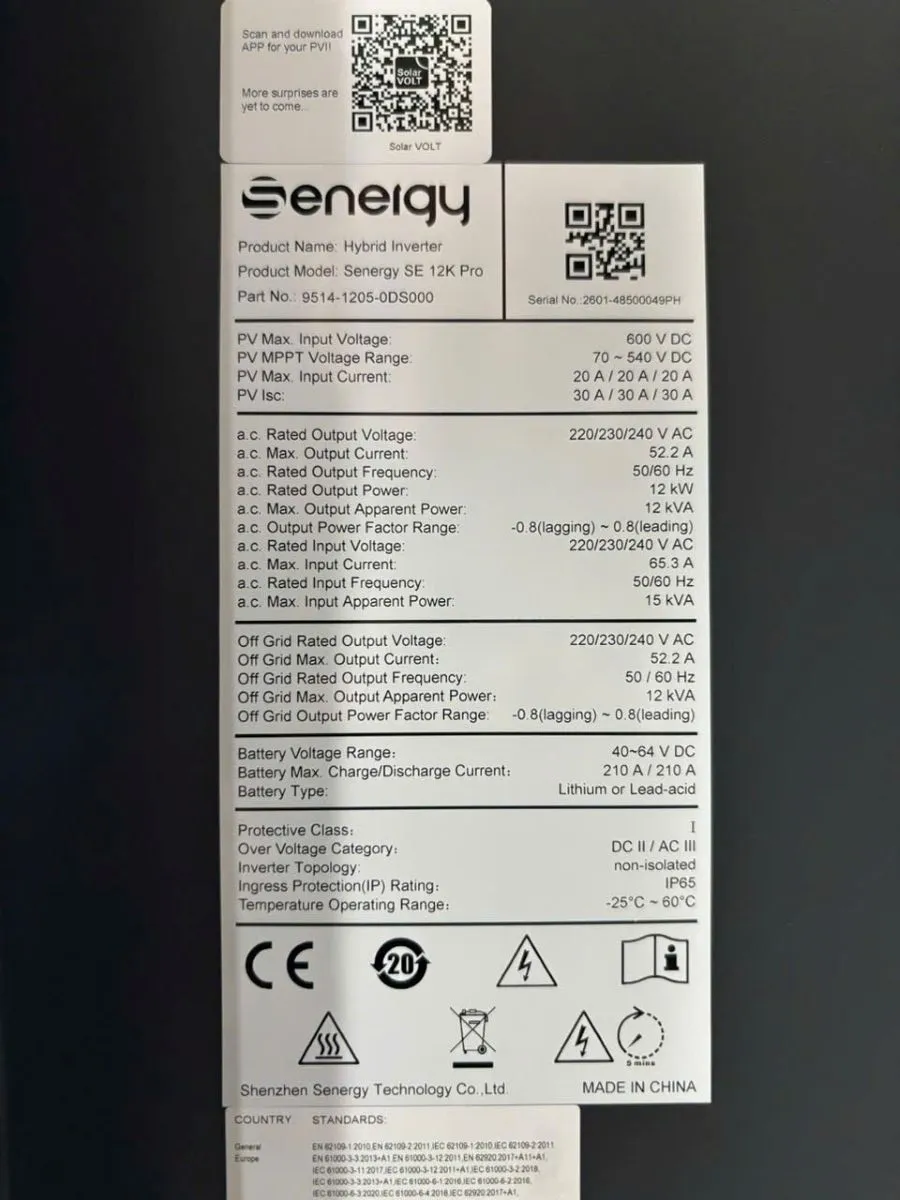 Thông số kỹ thuật chính – Senergy Hybrid 12K PRO