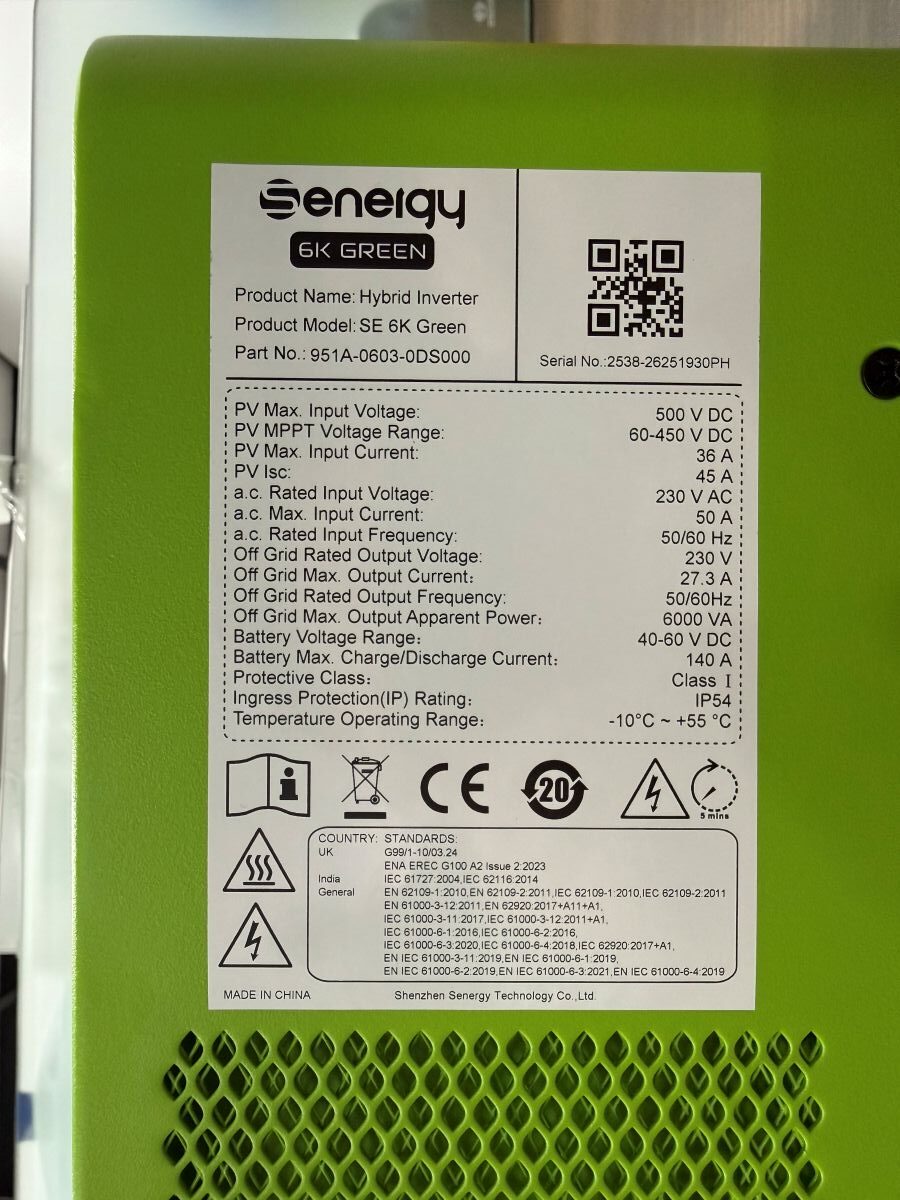 HÌNH ẢNH CỦA INVERTER HYBRID SENERGY 6KW SE 6K GREEN